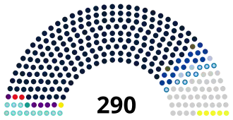279 representatives have been elected in the first round of the legislative elections held on 21 February 2020.[3][4] The second round to elect the 11 remaining seats was postponed due to COVID-19 pandemic in Iran and held on 11 September 2020.[3][5]