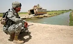 A soldier from the 2nd Battalion, 121st Infantry Regiment in Iraq during July 2005