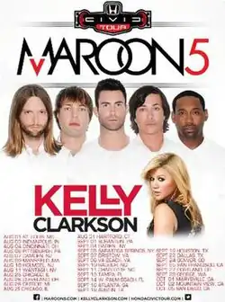 - ^ a b "Maroon 5, Adam Levine & 'The Voice' Artists to Join Kelly Clarkson on Tour". Broadway World (Press release). Wisdom Digital Media. April 1, 2013. Retrieved April 1, 2013.