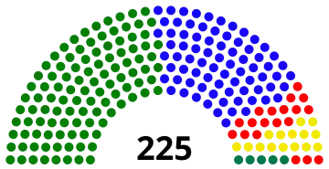 The 12th parliamentary election was held on 5 December 2001. The United National Front (UNF), a newly formed opposition alliance, became the largest group in Parliament by winning 109 of the 225 seats. The incumbent People's Alliance (PA) won 77 seats. The Janatha Vimukthi Peramuna (JVP) won 16 seats and the Tamil National Alliance (TNA), a newly formed alliance of Tamil parties, won 15 seats. Smaller parties won the remaining 8 seats.[1]