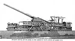 9. ^ The gun breech was over 1 foot (300 mm) wider than the standard track gauge of 4 feet 8.5 inches (1.435 m). Earle (1920), pages 184, 199.