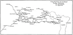 The US Army ordered three units identical to the Navy Mark I mountings in May 1918 and another three in July 1918, also from Baldwin Locomotive Works. They were all completed by 20 September 1918 but the war ended before they were required to be shipped to France.[16]