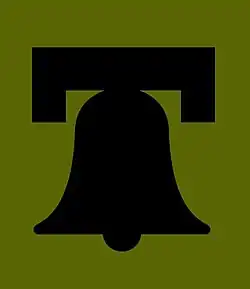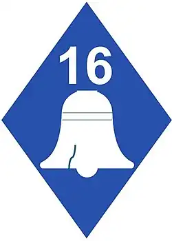 Because the 16th Division was in existence for such a brief period, it never officially designed or adopted a shoulder sleeve insignia or distinctive unit insignia.[8] However, some members of the organization devised a felt shoulder patch that featured the Liberty Bell, one with the number "16" superimposed on it; neither insignia was ever officially adopted.[9]