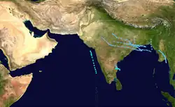 The years before 1890 featured the pre-1890 North Indian Ocean cyclone seasons. Each season was an event in the annual cycle of tropical cyclone formation. The North Indian tropical cyclone season has no bounds, but they tend to form between April and December, peaks in May and November. These dates conventionally delimit the period of each year when most tropical cyclones form in the northern Indian Ocean. Below are the most significant cyclones in the time period. Because much of the North Indian coastline is near sea level and prone to flooding, these cyclones can easily kill many with storm surge and flooding. These cyclones are among the deadliest on earth in terms of numbers killed.