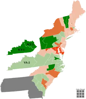 1. ^ Excluding states that joined during the Second Congress and a very late run-off election in Massachusetts's 6th congressional district.