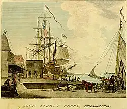 The Arch Street wharf along the Delaware River in Philadelphia, where the first cluster of cases was identified in August 1793[1]