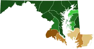 | Prince George's | 242 | 88.00% | 33 | 12.00% | 0 | 0.00% | 209 | 76.00% | 275 |