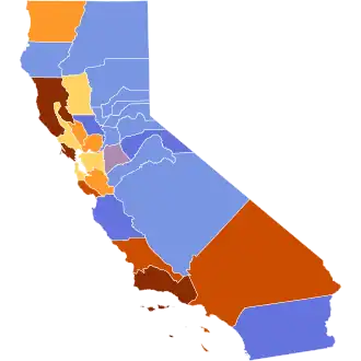 | Contra Costa | 174 | 49.01% | 181 | 50.99% | -7 | -1.97% | 355 |