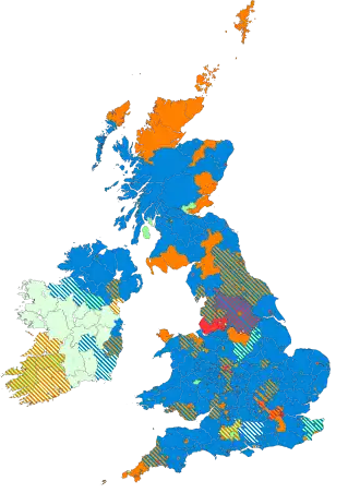 ![]() Colours denote the winning party—as shown in § Results | |||||||||||||||||||||||||||||||||||||