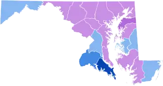 | Baltimore (City) | 16,900 | 62.60% | 9,882 | 36.61% | 214 | 0.79% | 7,018 | 26.00% | 26,996 |