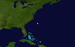 The ship Star of the South experienced heavy gales offshore the East Coast of the United States on June 30.[6] HURDAT lists the first tropical cyclone of the season beginning at 0000 UTC, while located about 100 miles (160 km) southeast of Cape Hatteras, North Carolina.[7] The storm moved slightly north of due east with winds of 60 mph (95 km/h).[7] It was last noted about 265 miles (425 km) north-northwest of Bermuda by the bark Virginia late on July 1.[6][7] Climate researcher Michael Chenoweth argued in a 2014 study that weather maps support the theory that a low-pressure area formed "along a sharp temperature boundary", making this system an extratropical cyclone.[8]
