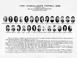 The events leading up to the first college football game were described by John Warne Herbert Jr., in 1933.[9] Herbert was one of the players on the Rutgers team in the inaugural college football match and the youngest player in the game.