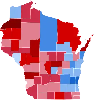 | Sheboygan | 2,687 | 47.67% | 2,948 | 52.30% | 2 | 0.04% | -261 | -4.63% | 5,637 |