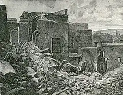 The 1883 Casamicciola earthquake, also known as the Ischia earthquake occurred on 28 July at 20:25 local time (Central European Time) on the island of Ischia in the Gulf of Naples in Italy. Although the earthquake had an estimated moment magnitude (Mw) of 4.2–5.5, considered moderate in size,[3] it caused intense ground shaking that was assigned XI (Extreme) on the Modified Mercalli intensity scale. Between 2,313 and 3,100 people lost their lives. The city also suffered great property losses, with 80 percent of all homes destroyed.[4] This earthquake was exceptionally destructive for its magnitude mainly due to its shallow focal depth.