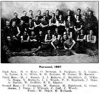 41. ^ "FOOTBALL". The South Australian Advertiser. Adelaide: National Library of Australia. 4 July 1887. p. 7. Retrieved 5 March 2015.