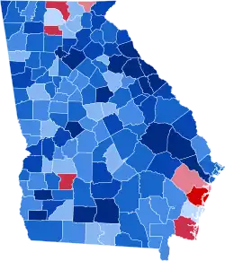 | Gwinnett | 2,004 | 90.56% | 186 | 8.40% | 23 | 1.04% | 1,818 | 82.15% | 2,213 |