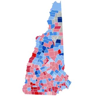 This would be the last election when bellwether Coös County in the far north voted for a losing presidential candidate until voting for Hubert Humphrey over Richard Nixon in 1968. It would also be the last election when a Democratic presidential candidate carried Merrimack and Rockingham Counties until 1912, when the Republican Party was divided between Progressive Theodore Roosevelt and conservative incumbent Taft, and the last when those two gave a majority to the Democrat until Lyndon Johnson in 1964.[1] Harrison was the first Republican to ever win without Rockingham County.