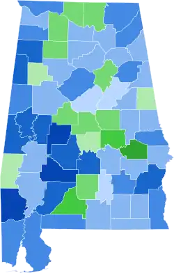 Weaver won sixteen counties, five were in the Black Belt while the remainder were white counties.[3]