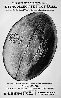An 1893 ad for the Spalding Model No. J Intercollegiate Football, declared official for 1895 by the Oregon Intercollegiate Football Association.