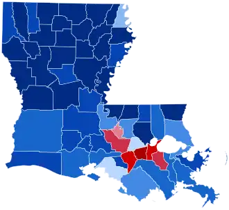 | Plaquemines | 1,502 | 73.16% | 540 | 26.30% | 11 | 0.54% | 962 | 46.86% | 2,053 |