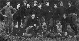 The starting lineup was Boogher (left end), McAlister (left tackle), Whitemore (left guard), Brown (center), Hassett (right guard), Langhorst (right tackle), Stringfield (right end), Goodson (quarterback), Connell (left halfback), Dye (right halfback), Farrell (fullback).[13]