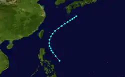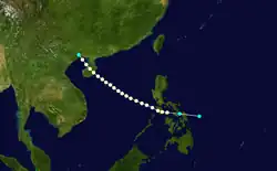 On July 7, a typhoon spawned east of Samar Island. The storm moved west, impacting the northern portion of Samar. The next day, the typhoon made landfall over Masbate. The next day, the storm made landfall over Mindoro and went outside the Philippines. Over the next few days, the storm progressed northeast over the East China Sea. The storm then impacted Hainan and later mainland China, dissipating thereafter on July 13.[5] The same day, a storm spawned east of Northern Samar. The storm drifted east, making landfall on the Philippines. On July 16, the storm turned north and continued over the following days. The storm dissipated on July 18.[6] The storm caused damages to Hong Kong and had a total of 20 fatalities.[7] On July 23, another storm spawned east of Samar Island. The storm moved northwest, making landfall on Luzon. The storm drifted north and dissipated on July 29, after making landfall over China.[8] The typhoon caused damage to a hospital and destroyed Camp Vicars in Mindanao. There were no casualties, but the storm caused three indirect fatalities after an attack just after the typhoon.[9] On July 31, a storm spawned in the South China Sea. The storm traversed northwest, where it made landfall over mainland China. The storm dissipated on August 3.[10]