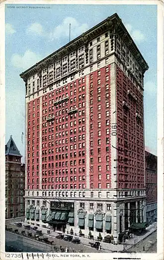 By May 30, 1912, waiters and other hotel workers had left over 17 establishments, including Sherry's, Mouquin's, Vanderbilt, Waldorf, Prince George, Breslin, Rector's, the Hotel Knickerbocker, Bustanoby's, and the Plaza.[5][6] Hotel owners continued to ignore the demands of the union members, stating that they would only deal with their workers when they came back on their own, without the union. Union members observed that higher-class eating and hotel establishments rarely ever accommodated outside labor organizations.[1] By this time, the Hotel Workers’ International Union was receiving major harassment from the police and media outlets.[7] The Herald is quoted saying, “It is inconceivable that any properly managed establishment could afford to do anything that would place the control of its servants in the hands of an irresponsible union”.[1][8]