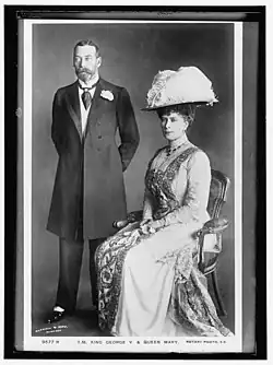 After dinner there was a demonstration of dancing by married couple Maurice Mouvet and Florence Walton.[8] The pair became the first American dancers to appear in a performance by royal command.[10] The tango, a relatively new dance, had been performed in Paris since around 1910 and had been danced in London since 1912, though it was opposed by the press due to its supposed immorality.[11] The dance gained popularity over the following two social seasons and it was originally scheduled to be performed at the Kenwood House ball.[11][12] It was rumoured at the time that Mary had banned the dance at the Royal Court and it was removed from the programme.[11][12]