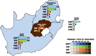 The 27 NP candidates elected represented three of the four provinces - 7 from Cape Province, 16 from the Orange Free State and 4 from Transvaal.[5]
