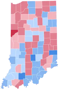 This was the first time since 1876 that Indiana voted for the losing candidate, and the first since 1836 that a Democrat won without the state. The election marked the beginning of a trend in which the state was more Republican than the nation as a whole. Before 1916, all but one winning Democrat as well as one losing Democrat had carried the state. Beginning with 1916, the Democratic party has won 14 elections as of 2022, and in only four of these elections did it carry Indiana. Furthermore, three of those four victories were in landslide elections with double-digit margins: 1932, 1936, and 1964.