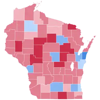 As things turned out, Wisconsin would be comfortably, if not overwhelmingly, carried by Republican nominee Hughes, who won the state by 6.29 percentage points. Signs of the collapse of German Catholic Democratic loyalties were seen in Hughes carrying Ozaukee County, which no Republican had ever won before and was Wisconsin's only county to resist major Republican landslides by backing both William Jennings Bryan in 1896 and 1900 and Alton Brooks Parker in 1904.[14] This German Catholic Democratic collapse – broken abruptly by a powerful vote for coreligionist Al Smith in 1928 and for Franklin D. Roosevelt in 1932 – would be a major feature of interwar Wisconsin presidential politics.