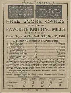 2. ^ a b c Keck, Harry (November 10, 1918). "Red and Black Makes Very Weak Showing Against Blue and Gold". The Pittsburgh Sunday Post. p. 18 – via Newspapers.com.