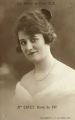 In the early 1920s, some women chose not to bob their hair, so they pinned it up to look shorter. Mlle Cayet, Queen of Parisian Carnival, 1922