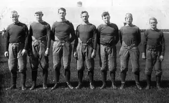 During practice in the fall of 1921, 300 students were outfitted with football uniforms, 50 first-string players, 20 "scrubs", and 200 freshmen.[7]
