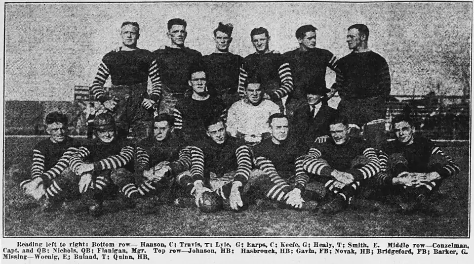 | Head coach | Frank Coughlin, Jimmy Conzelman |
