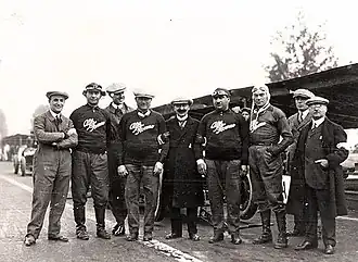 Foresti crashed in practice and Ferrari did not take the start because of mental exhaustion.[10] At the beginning of 35 laps, it was Segrave who had drawn pole position who took the lead. He held it until he had to pit with a misfire on lap 3 to change plugs. Bordino had come through the field getting his Fiat into the lead, pursued by Ascari, while Guinness and Campari tussled for third. On lap 9, Ascari moved into the lead when Bordino had to pit with fading brakes, as did his teammate Nazzaro.[10][30] The Sunbeam challenge was blunted when Guinness retired with crankshaft problems. Segrave brought his misfiring car back up through the field but only managed to reach sixth (while also setting the fastest lap time). Ascari was charging to victory when he suddenly slowed with just three laps to go. He was overtaken by Campari and Divo and he was forced to pit. When he could not restart the engine, his race was done. Campari held on to win the race with Divo just a minute behind in his Delage. His teammate Benoist was a further ten minutes back in third and Wagner was fourth in his Alfa.[31]