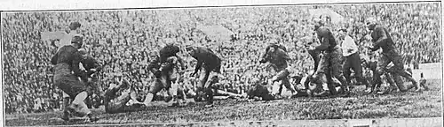 After a bitterly fought first quarter, Jones netted 27-yard and 40-yard field goals for a 6–0 lead at the half. Jones ran off tackle for the game's only touchdown. Some 20,000 were in attendance.[39]