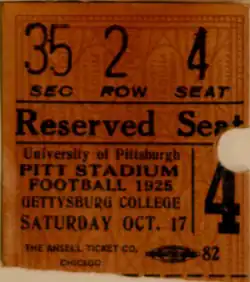 - ^ "Huge Bowl Ready For Initial Use; Lineup in Doubt". The Pittsburgh Sunday Post. September 20, 1925. pp. 3–5 – via Newspapers.com.