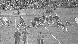 With the team back in school, practice was held in the stadium so the 75 freshmen team aspirants could use the practice field. At the stadium, the day before the first game against Allegheny College, Coach Sutherland allowed the student body to watch practice for the first time.[20]