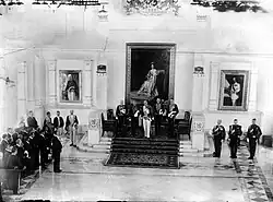 Governor-General De Graaf answers the speech of the chairman of the Volksraad Meyer Ranneft, who comes to offer congratulations "from the population" in 1929. Most radical Indonesians withdrew from the Volksraad in 1923.