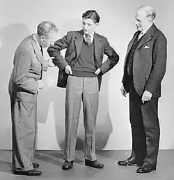 Throughout the 1930s and early 1940s, a second influence vied with Paris couturiers as a wellspring for ideas: the American cinema.[7] As Hollywood movies gained their popularities, general public idolized movie stars as their role models. Paris-based fashion houses no longer solely dictated major fashion trends. Many American and European moviegoers were fascinated by and got interested in overall fashion including clothes and hairstyles of movie stars which led to various fashion trends.[8] After the movie Tarzan, animal prints became popular. On the other hand, different styles such as bias-cut, satin, Jean Harlow-style evening dresses and the casual look of Katharine Hepburn also became famous.[9] Paris designers such as Elsa Schiaparelli and Lucien Lelong acknowledged the impact of film costumes on their work. LeLong said "We, the couturiers, can no longer live without the cinema any more than the cinema can live without us. We corroborate each others' instinct.[10]