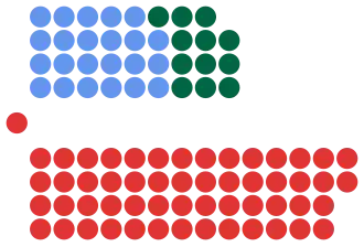 Last election 40 seats, 43.00% 33 seats, 38.48% 13 seats, 8.89%