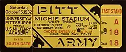 - ^ "How Pitt Led, Trailed and Rallied to Defeat Army Eleven at West Point". Pittsburgh Sun-Telegraph. October 16, 1932. p. Part 2-2 – via Newspapers.com.