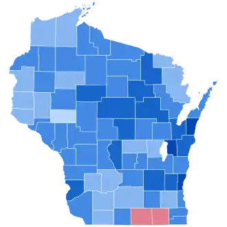 Roosevelt won every county except the two Yankee strongholds of Rock and Walworth,[14] which had been Calvin Coolidge's best counties when Robert M. La Follette, Sr. carried his home state in 1924. With his win in Wisconsin, Roosevelt became the first Democratic presidential candidate since Woodrow Wilson in 1912 to carry the state and the first since Franklin Pierce in 1852 to win the state with a majority of the popular vote (Wilson's win and Grover Cleveland's in 1892 were only pluralities).