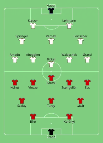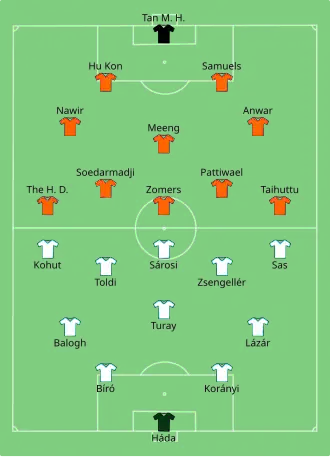 The difference in strength between the two teams was evident as the game resulted in a humiliation for the Dutch East Indies, which managed to hold out for just 13 minutes. In the second half, although Hungary relaxed their pressure, they were never truly troubled by the opponents.[2]