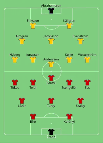 Sweden took the lead after just 35 seconds, but that remained the only goal scored by them. Hungary quickly settled in control of the game, scoring thrice before half-time. Sweden, who had impressed in previous games, could not resist the vastly superior opponent, who scored two additional goals in the second half, cruising towards the final after a comfortable win.[2]