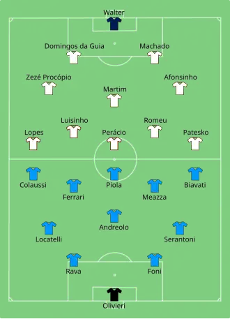 The narrative leading to this highly anticipated match was built around an overconfident Brazil, who had impressed in the previous three matches. However, Italy had a better start to the game, creating the best chances but finding a well-positioned Walter stopping their attacks. In the second half, Italy soon found the net with Colaussi, before being awarded a penalty following a foul in the box by Domingos da Guia, his third in the tournament. The penalty was calmly converted by Meazza. At 2–0, Brazil pushed forward to break the Italian defence, but only managed to score a goal in the 87th minute with Romeu scoring from a corner kick. Some tense moments followed, but Italy managed to hold out for the remaining time, reaching their second final in a row.[2]
