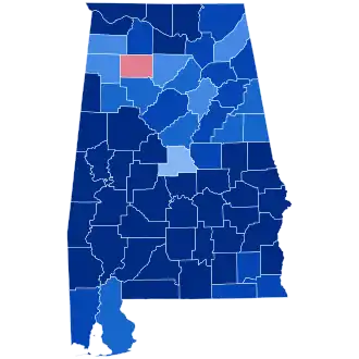 However, the economic catastrophe of the Great Depression meant that this trend towards the GOP would be short-lived.[9] The Depression had extremely severe effects in the South, which had the highest unemployment rate in the nation, and many Southerners blamed this on the North and on Wall Street.[10] Consequently, the South gave Democratic nominee Franklin D. Roosevelt hefty support in 1932 – he became the only presidential candidate to sweep all of Alabama's counties[11] — and in 1936.