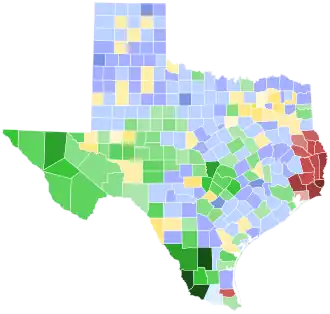 O'Daniel: 20–30% 30–40% 40–50% 50–60% Johnson: 30–40% 40–50% 50–60% 60–70% 70–80% >90% | |||||||||||||||||||||||||||||||||||||