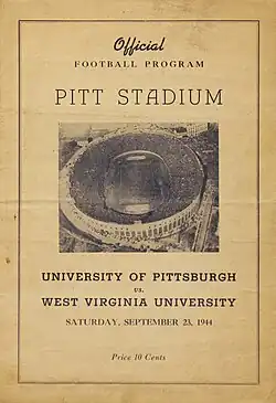 - ^ a b Hughes, Carl (October 5, 1944). "Pitt Puts Out Welcome Mat For West Virginia Rivals". The Pittsburgh Press. p. 23. Retrieved July 19, 2023 – via Newspapers.com.